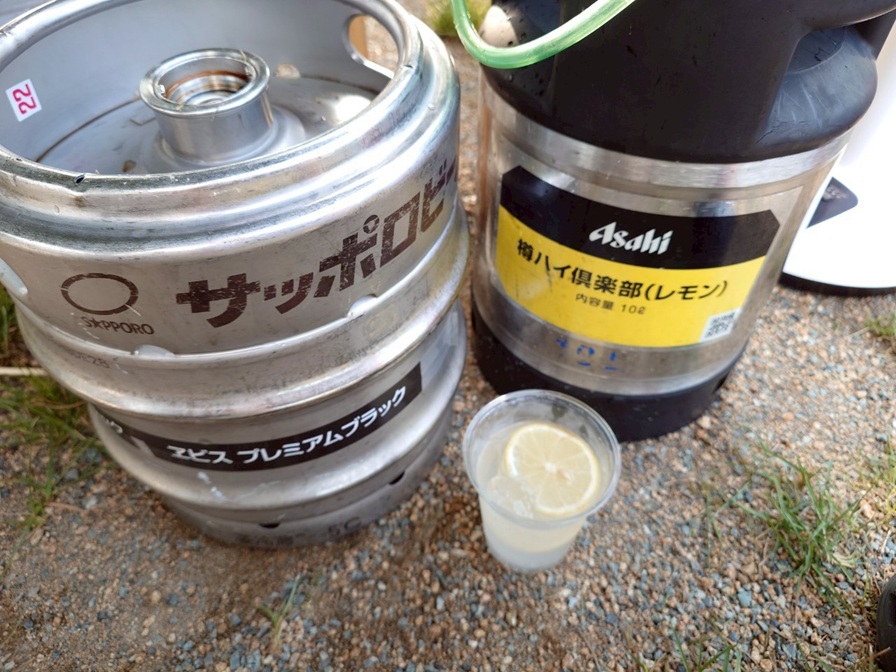 1.センターハウス トイレが綺麗です 2.Sさん持参の生ビールとレモン酎ハイの樽 3.昼さなかの宴会 生ビールからレモン酎ハイでべろべろ