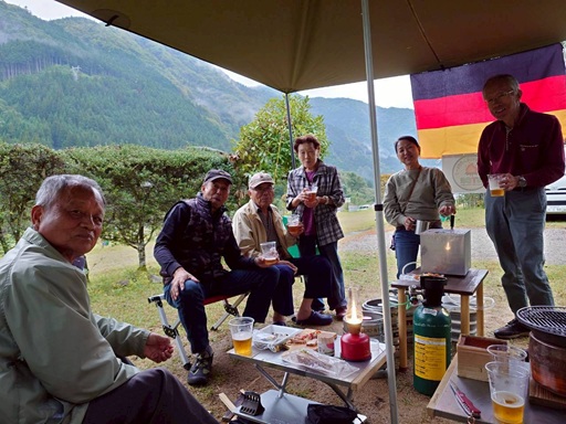 10.生ビールでのんびり 11.野菜の天ぷらで盛り上がりました 12.天候に恵まれのんびり休憩