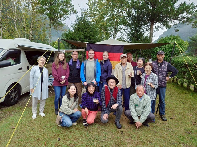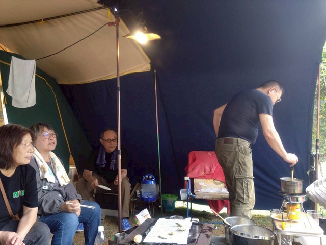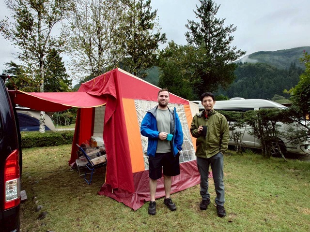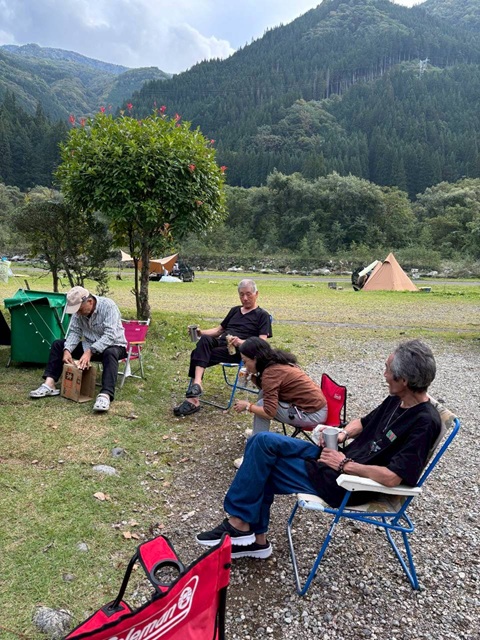1.ゲストと記念撮影 2.生ビールで乾杯 感謝感謝 3.Hさんのテント ゲストさんビックリ